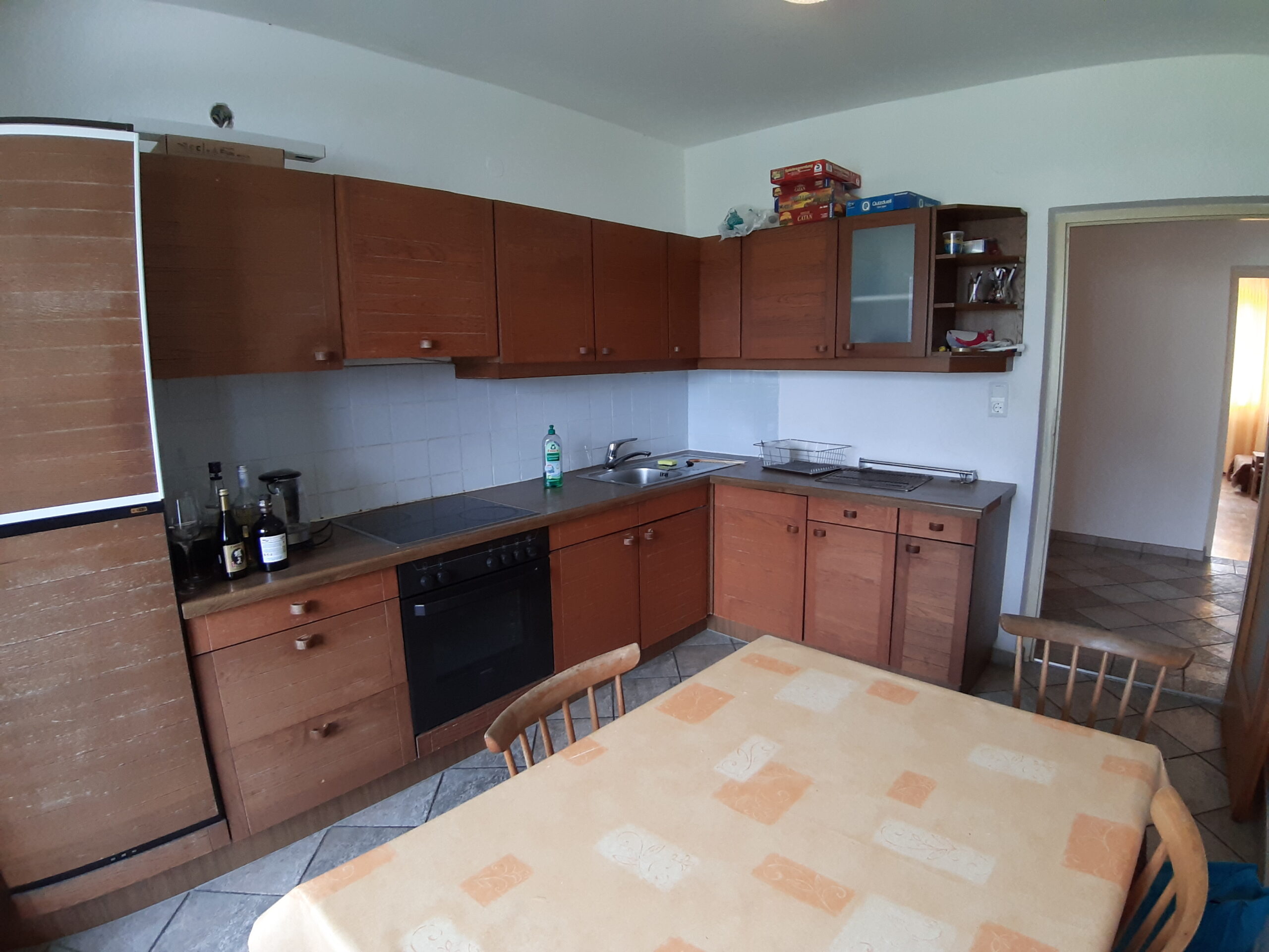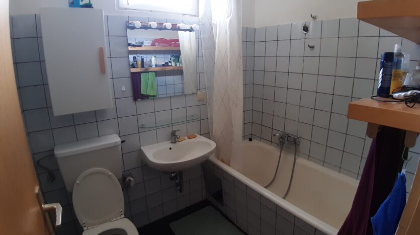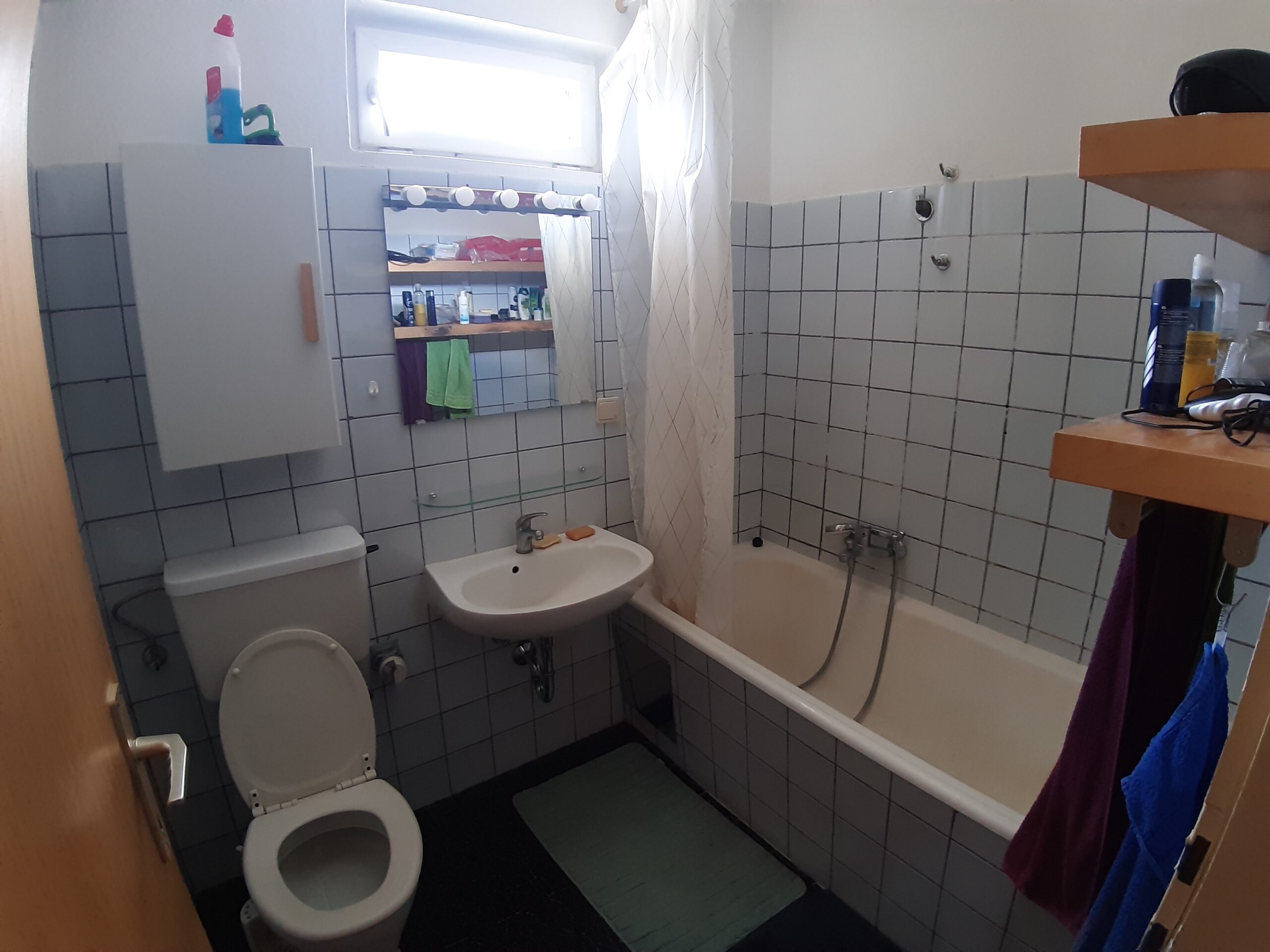 Badezimmer und Küche sind nicht renoviert, alles ist aber funktionstüchtig, aber in die Jahre gekommen. Die Böden weisen Gebrauchsspuren auf.