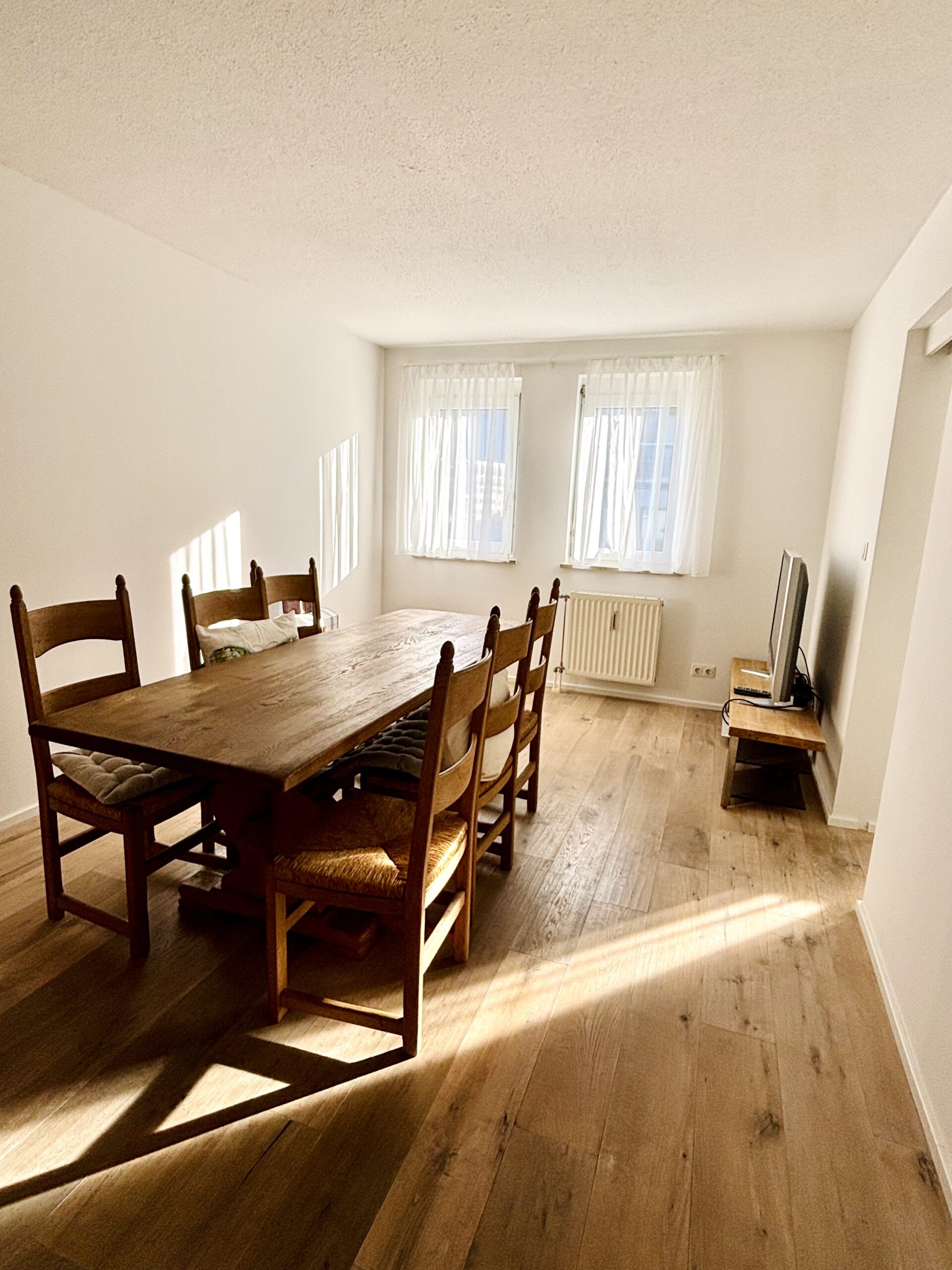 Die Wohnung umfasst insgesamt vier Zimmer, wobei zwei Zimmer als Durchgangszimmer angelegt sind. Dadurch ist sie nicht für eine klassische 4er-WG geeignet, sondern ideal für ein Paar oder eine 2er-WG.