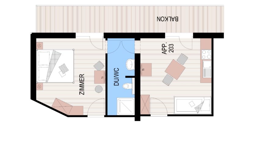 1 Doppelzimmer mit Balkon & DU/WC und TV
