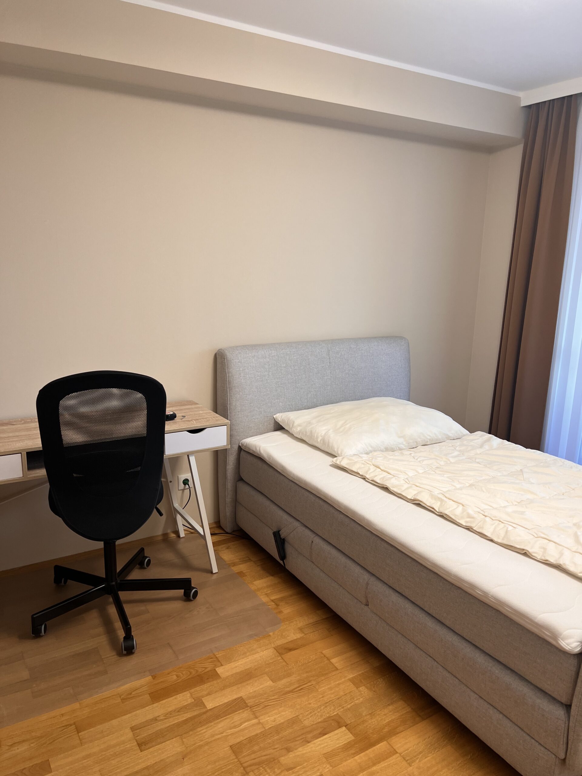 Das Zimmer ist hell und gemütlich geschnitten, nach Süden ausgerichtet und bietet genug Pl