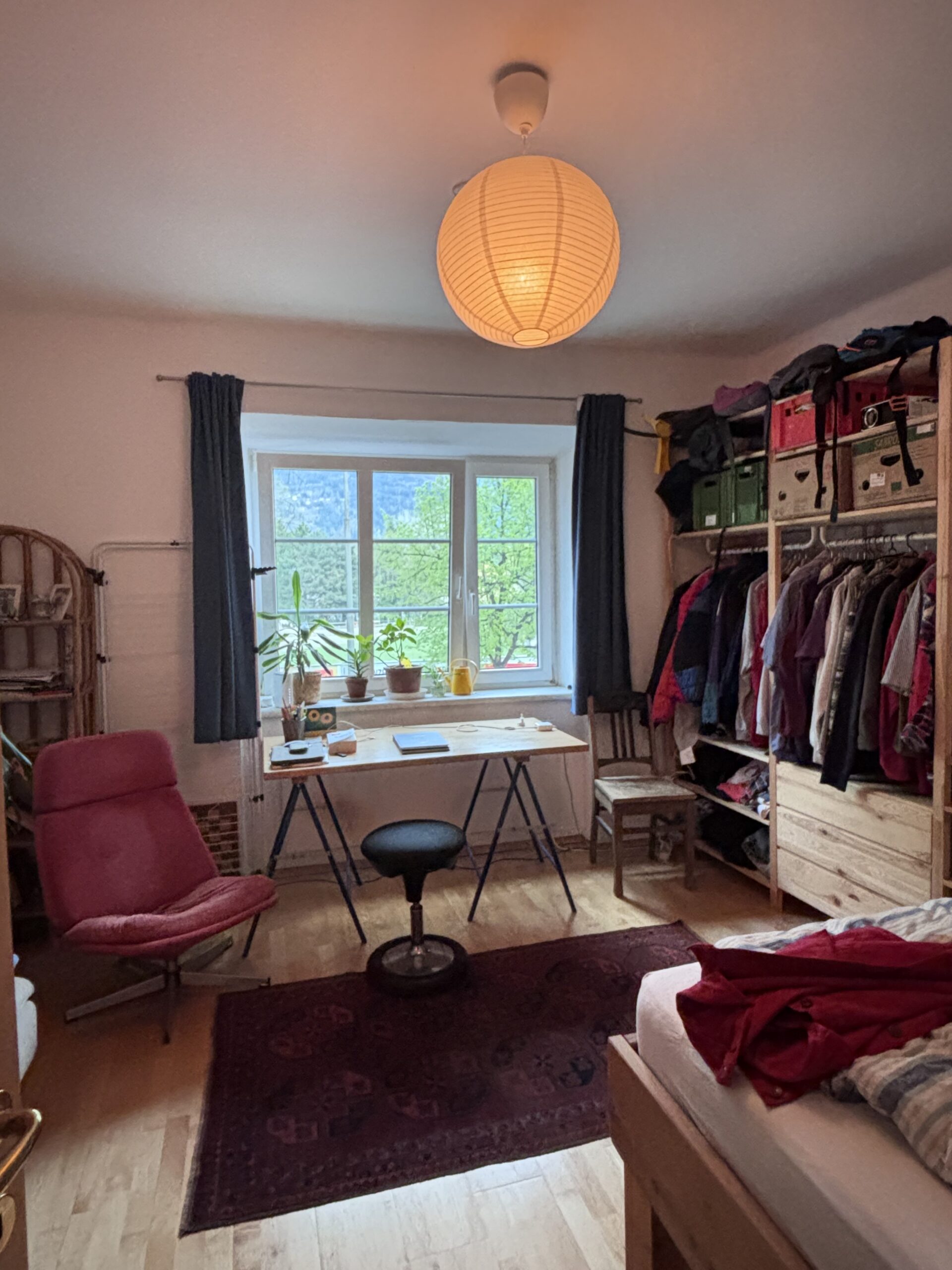 In unserer Zweier-WG wird zum ersten Mai ein Zimmer frei. Das Zimmer hat etwa 17 Quadratmeter und ein großes Fenster mit unverbauten Blick auf die Nordkette. Durch das Fenster kommt sehr viel Licht in das Zimmer. Die gesamte Wohnung ist großzügig geschnitten, mit einer riesigen, gut ausgestatteten Küche und einem Badezimmer mit Fenster und Badewanne. Zusätzlich gibt es einen kleinen Garten hinterm Haus, in dem man im Sommer gut Zeit verbringen kann. Zu Wohnung gehört außerdem ein geräumiges Kellerabteil und zudem wurde im Keller eine kleine Radlwerkstatt eingerichtet, die bei Bedarf mitbenutzt werden kann.