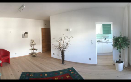 The east-facing apartment is located on the first floor of a quiet residential area with a view of the countryside. There are good public transport connections and a good infrastructure.