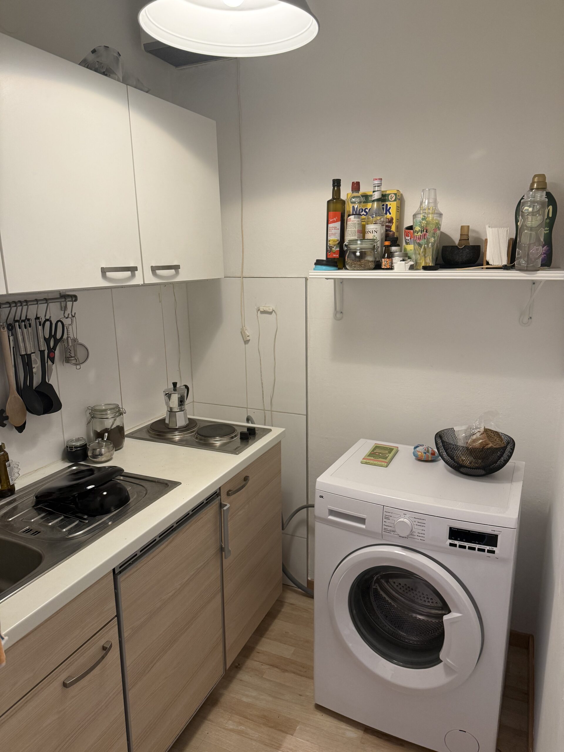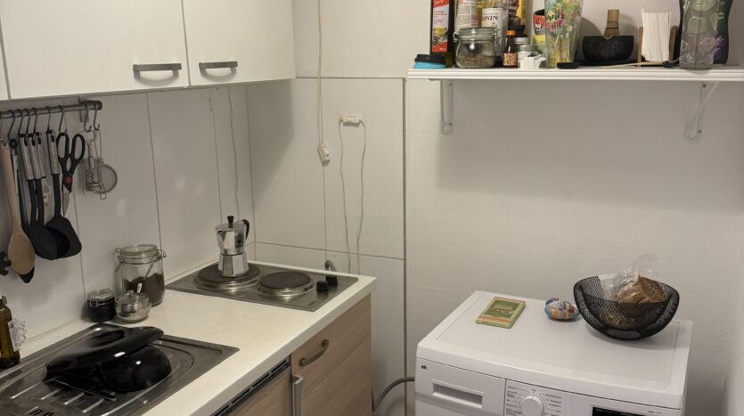 In der Kochnische befindet sich Platz für eine Waschmaschine. Anschluss vorhanden.
