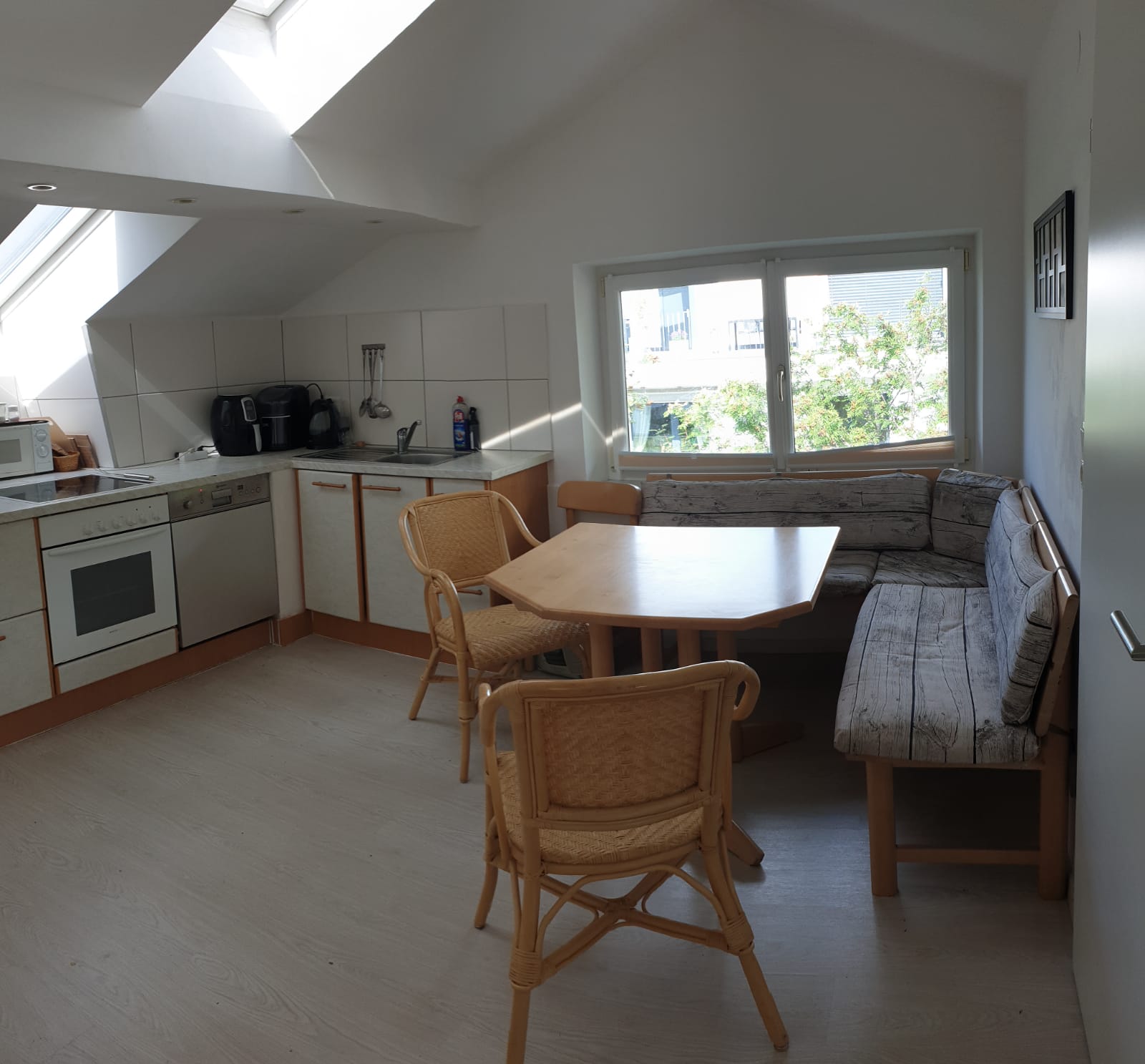 Wohnzimmer im Westen, Wohnküche mit Spülmaschine, Bad incl. Dusche und WC.