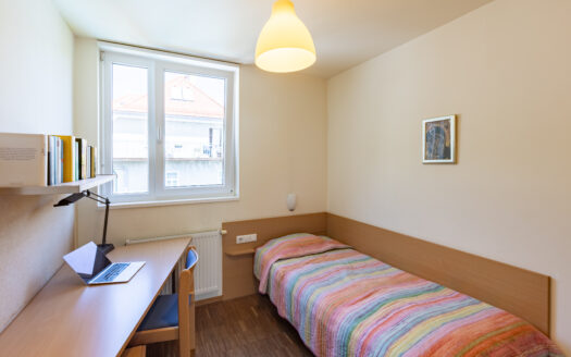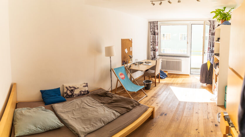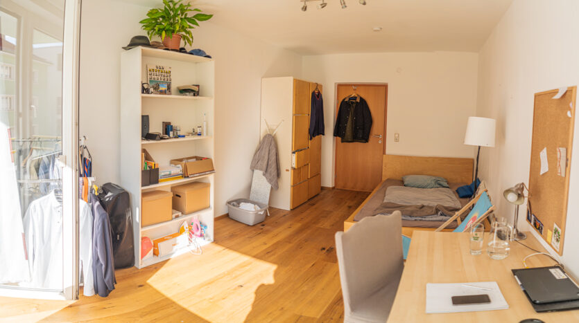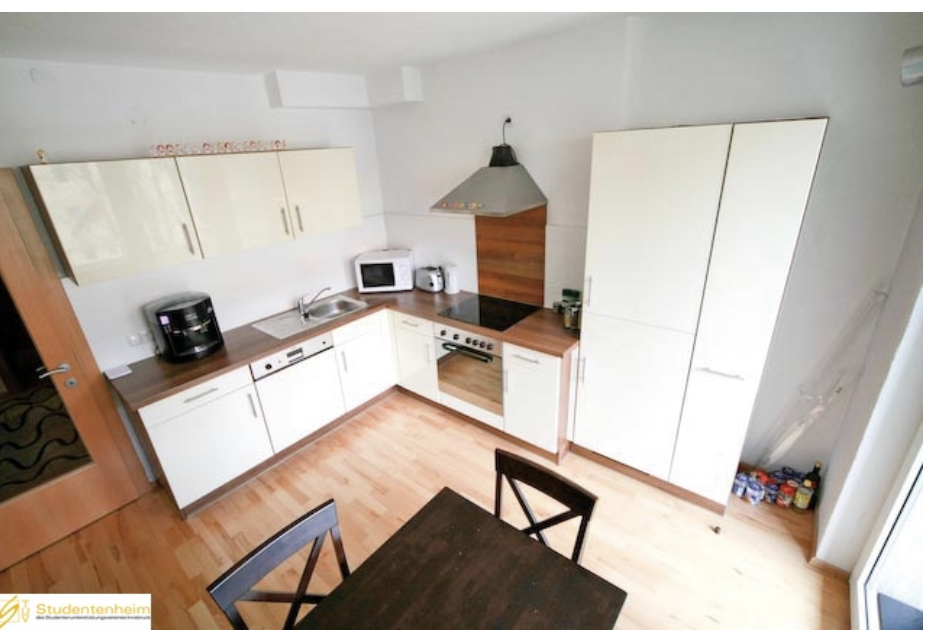 Die Einzelzimmer im Studentenheim sind zwischen 15 m² und 20 m² groß und einige Zimmer bieten sogar einen Balkon mit Blick auf die Nordkette. Die Zimmer sind möbliert und umfassen ein Bett (200 x 140 cm), Matratze, Schreibtisch, Bürostuhl, Kleiderschrank und Regal. Jedes Zimmer verfügt über Internetanschlüsse (LAN + WLAN / WiFi), die in der Miete enthalten sind. Jede Wohnung oder Wohngemeinschaft verfügt über eine eigene, voll ausgestattete Küche, ein Badezimmer mit Dusche und ein separates WC. Die Reinigung der Gemeinschaftsflächen (Küche, Bad, WC und Flur) findet einmal wöchentlich statt und ist in der Miete enthalten. Eine Waschmaschine ist im Haus vorhanden, alternativ gibt es einen Waschsalon in unmittelbarer Nähe.