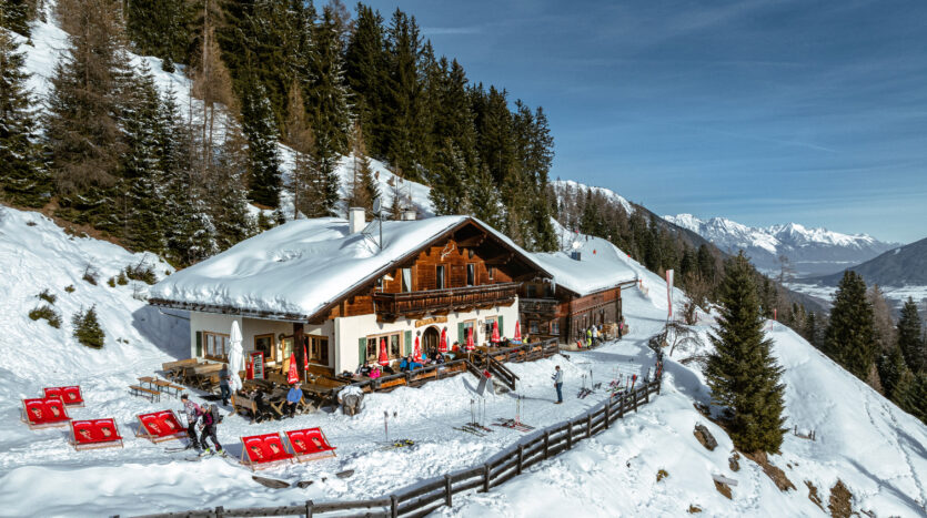 Die Alm liegt mitten im Wander- und Skigebiet der Schlick 2000.