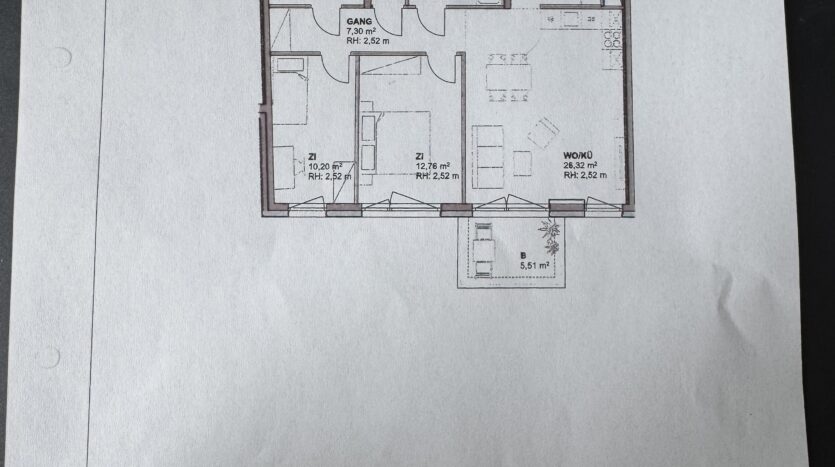 Die Wohnung hat 2 Schlafzimmer und einen großzügigen Abstellraum (6m2).