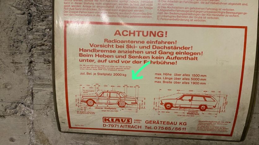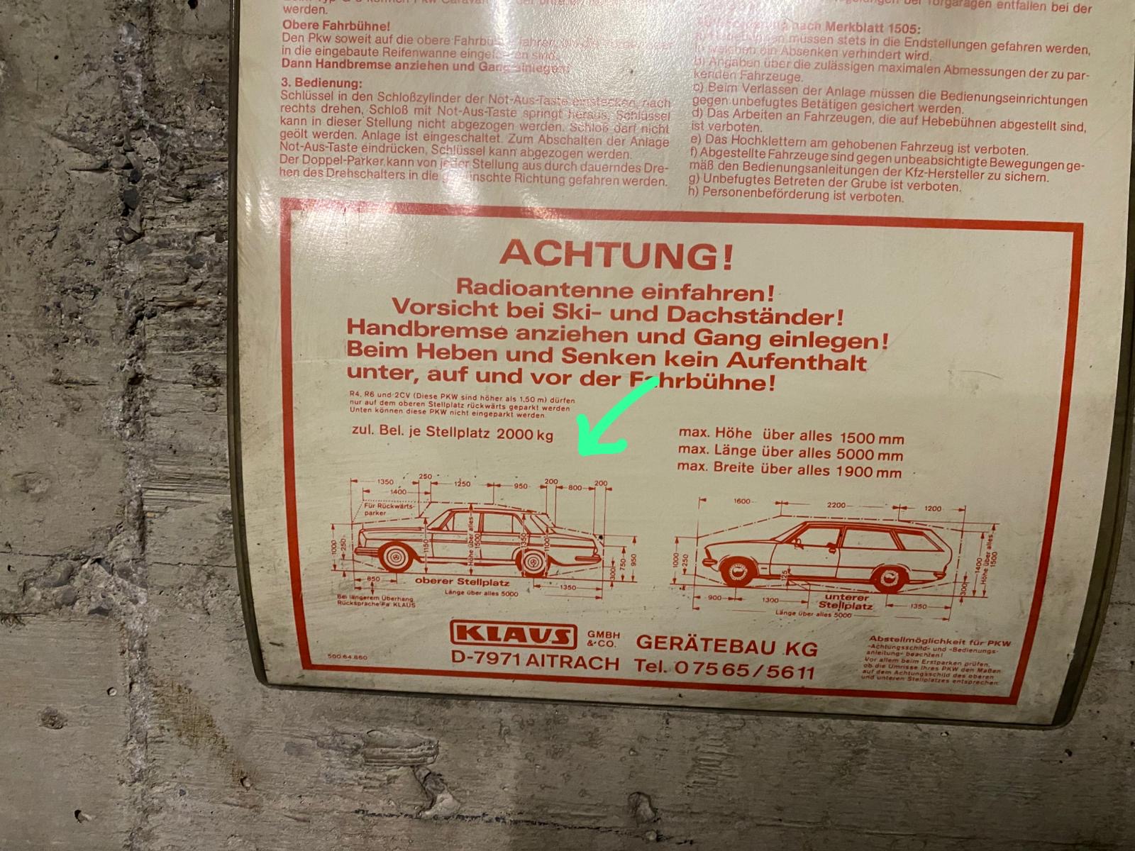 Es handelt sich um eine etagengarage – d.h höhenlimitierte Autos nur möglich (siehe Maße auf dem Foto).