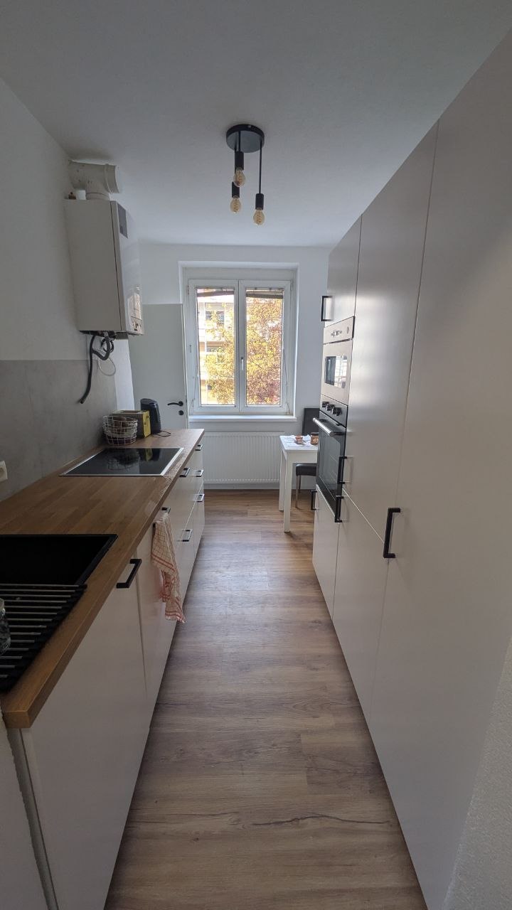 Hi everyone! The apartment is located at Andechsstraße 33, in a great area between Pradl and Reichenau. It is furnished and comes with a fully equipped kitchen including an oven and a dishwasher.