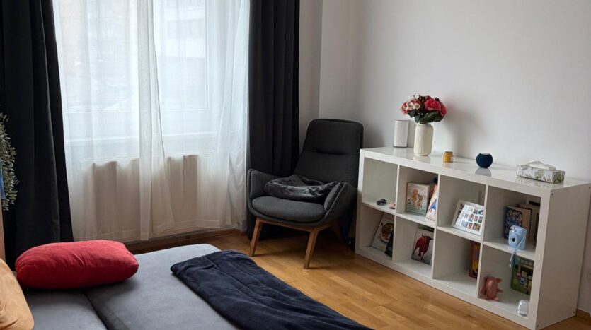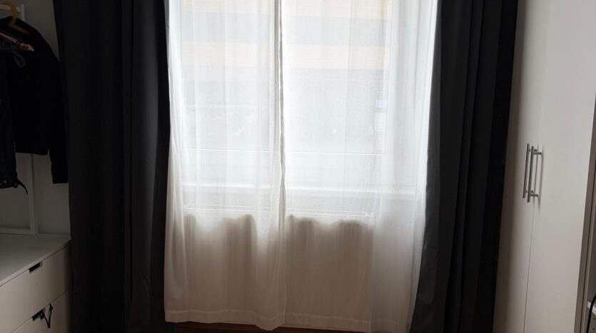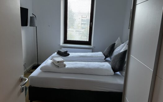 Die Wohnung ist voll möbliert und aktuell so eingerichtet, dass ein Zimmer als Schlafzimmer genutzt wird und das andere als Wohnzimmer mit Schreibtisch/Arbeitsplatz. Im Schlafzimmer gibt es ein 1,40 m Bett sowie einen großen Kleiderschrank. Im Wohnzimmer befinden sich eine Schlafcouch, Regale und ein Schreibtisch. Dadurch eignet sich die Wohnung besonders gut für eine Einzelperson oder auch ein Pärchen.