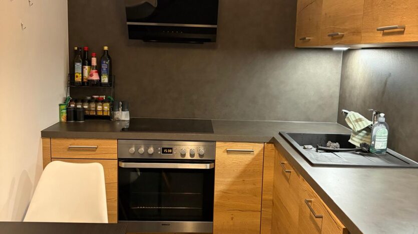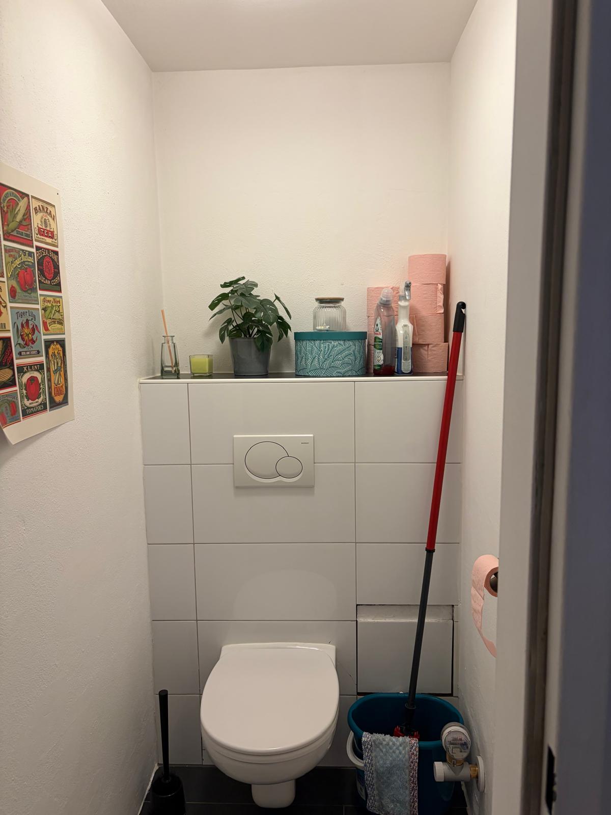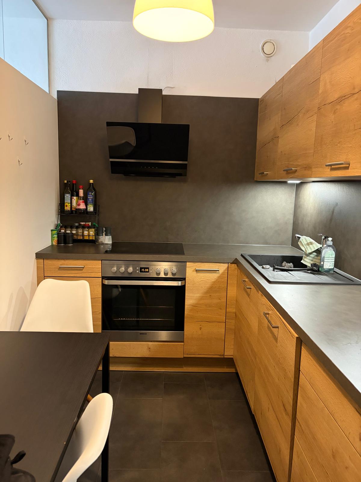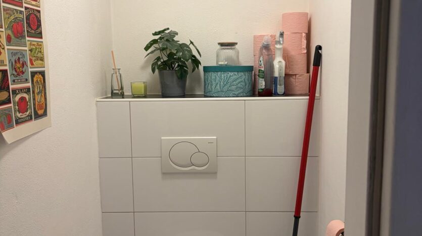 Die Küche ist sehr gut ausgestattet, verfügt über eine Spülmaschine und bietet außerdem einen kleinen Esstisch mit zwei Stühlen. Bad und Toilette sind getrennt. Zusätzlich gibt es noch eine Waschmaschine im Bad sowie ein Kellerabteil (ca. 4 m²), in dem man problemlos einiges verstauen kann.
