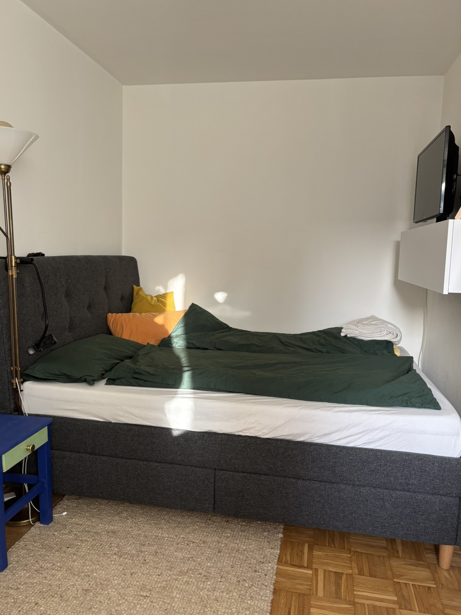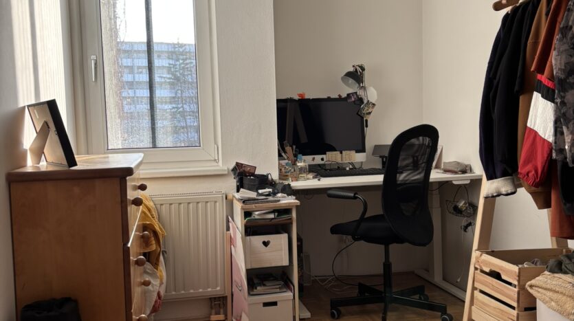 Das Zimmer hat 12 m2 mit Blick Richtung Osten. Die Möbel sind noch recht neu und können Großteils gegen eine Ablöse übernommen werden. Die Küche hat eine Spülmaschine und im Bad gibt es eine Waschmaschine. Zur Wohnung gehört ein Kellerabteil, welches zu einer kleinen Werkstatt umgebaut wurde.