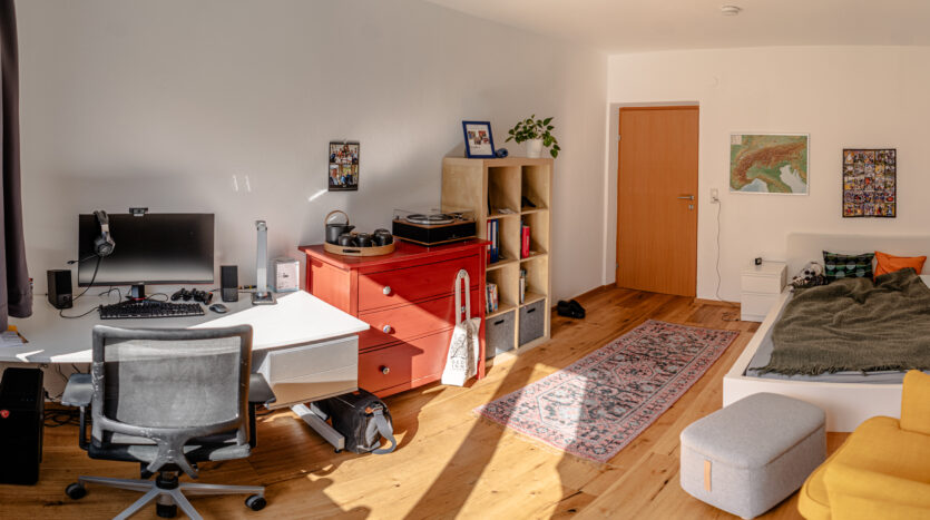 Die Einzelzimmer im Studentenheim sind zwischen 15 m² und 20 m² groß und einige Zimmer bieten sogar einen Balkon mit Blick auf die Nordkette. Die Zimmer sind möbliert und umfassen ein Bett (200 x 140 cm), Matratze, Schreibtisch, Bürostuhl, Kleiderschrank und Regal. Jedes Zimmer verfügt über Internetanschlüsse (LAN + WLAN / WiFi), die in der Miete enthalten sind. Jede Wohnung oder Wohngemeinschaft verfügt über eine eigene, voll ausgestattete Küche, ein Badezimmer mit Dusche und ein separates WC. Die Reinigung der Gemeinschaftsflächen (Küche, Bad, WC und Flur) findet einmal wöchentlich statt und ist in der Miete enthalten. Eine Waschmaschine ist im Haus vorhanden, alternativ gibt es einen Waschsalon in unmittelbarer Nähe.
